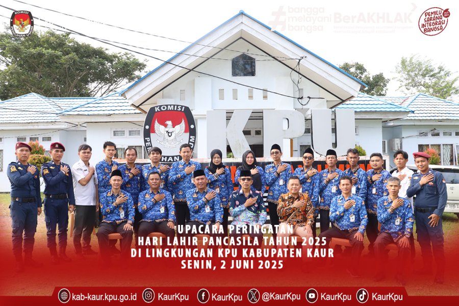 #TemanPemilih, KPU Kabupaten Kaur Melaksanakan Upacara Peringatan Hari Lahir Pancasila pada Hari Senin 2 Juni 2025 di Kantor KPU Kabupaten Kaur. Selaku Pembina upacara yakni Anggota KPU Kabupaten Kaur Didi Iswandi, Upacara dihadiri Oleh Plt.Ketua Jailani, Sekretaris KPU Kabupaten Kaur Rusdan Tafsiri Beserta Kasubbag dan staf KPU Kabupaten Kaur #KPUMelayani ....
