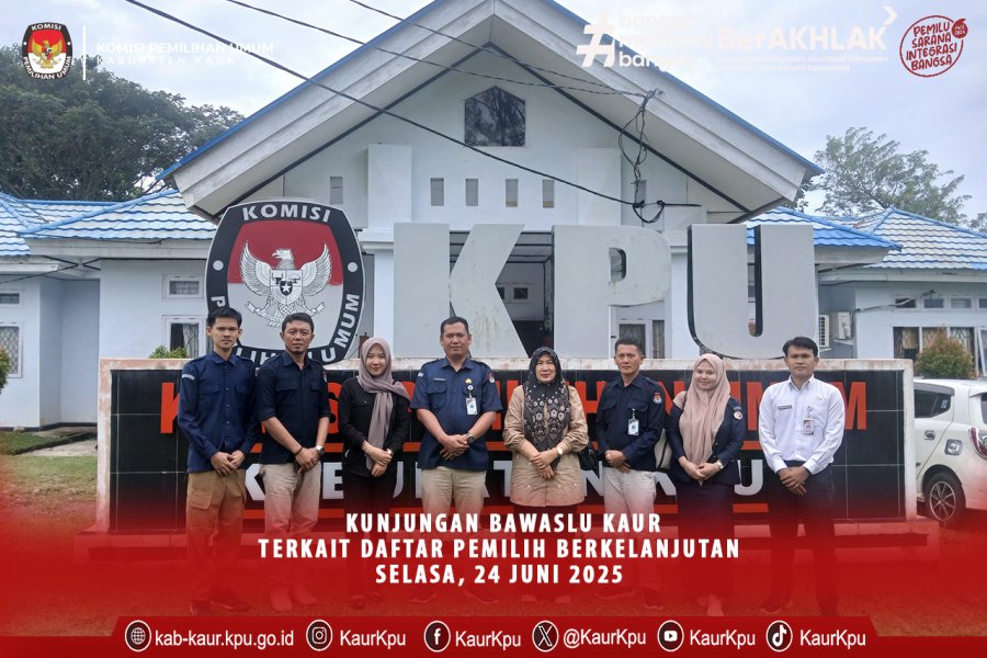 #TemanPemilih, KPU Kabupaten Kaur Menerimah Kunjungan Bawaslu Kaur Terkait Daptar Pemilih Berkelanjutan Selasa (24/06/2025). Diterimah Oleh Sekretaris Rusdan Tafsiri, Kasubbag dan Staf Sekretariat KPU Kabupaten Kaur. #KPUMelayani ....