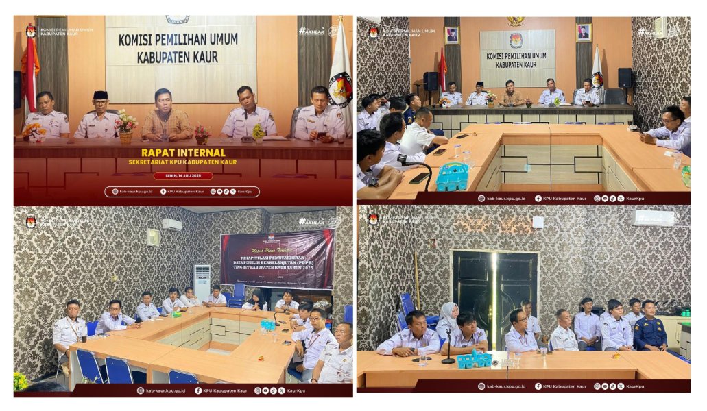 #TemanPemilih, melaksanakan Rapat Internal dilingkungan Komisi Pemilihan Umum Kabupaten Kaur membahas tentang hasil dari rotasi dan mutasi Jabatan setelah Pelantikan dan Pengambilan Sumpah/Janji Pejabat Manajerial dan Fungsional di Lingkungan Sekretariat Komisi Pemilihan Umum Provinsi Bengkulu bertempat di Aula KPU Kabupaten Kaur, Senin (14/7/2025) Rapat Internal yang dihadiri dan diikuti oleh Anggota KPU Kabupaten Kaur Muklis Aryanto Sekretaris Rusdan Tafsiri, Kasubbag dan Staf Sekretariat KPU Kabupaten Kaur #KPUMelayani ....