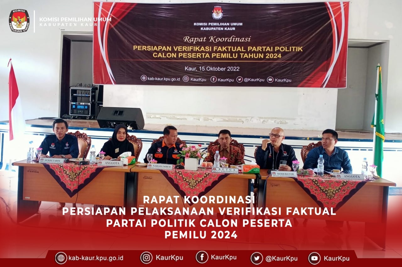 #TemanPemilih, KPU Kabupaten Kaur mengadakan Rapat Koordinasi Persiapan Pelaksanaan Verifikasi Faktual Partai Politik Calon Peserta Pemilu 2024.