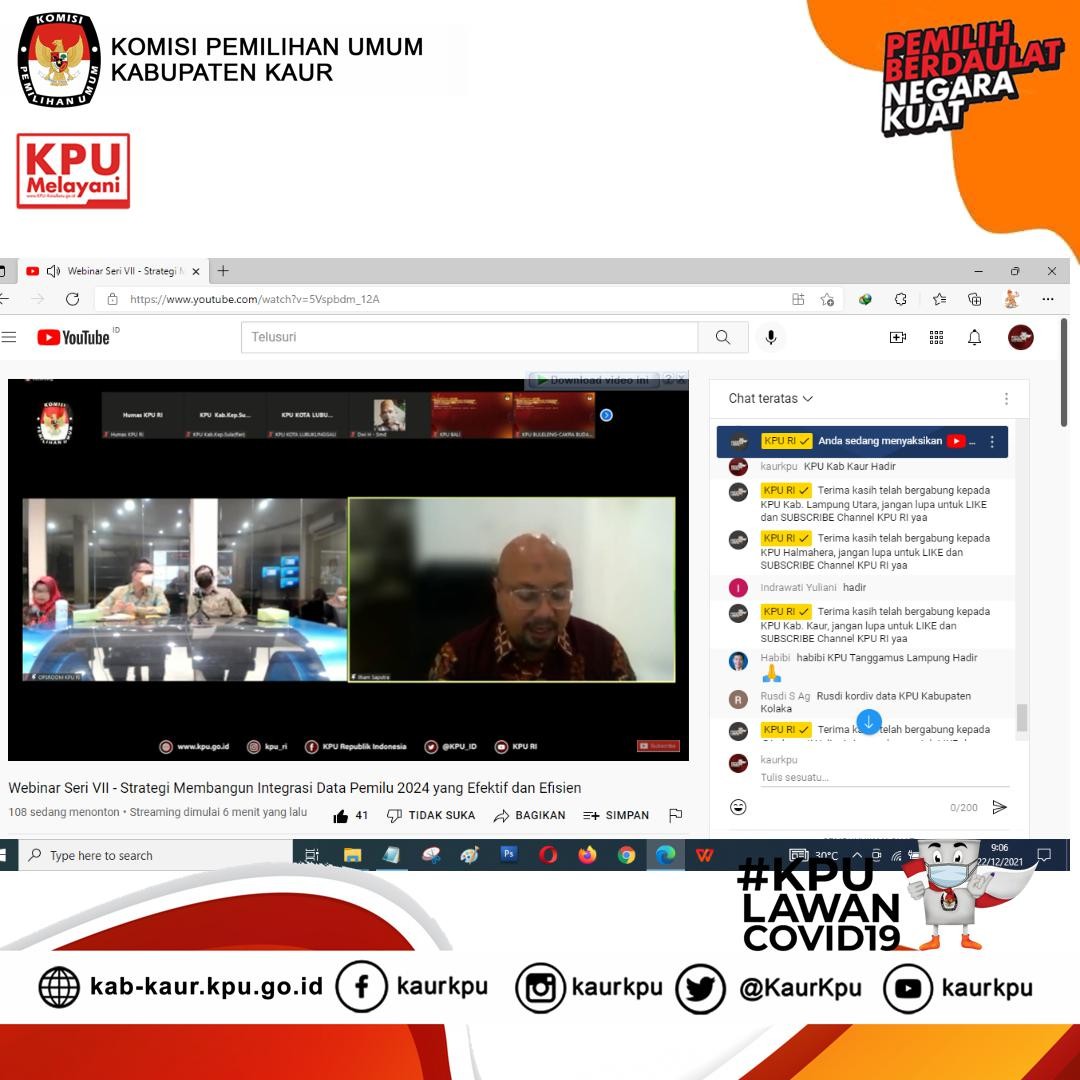 #TemanPemilih, Ketua Divisi Perencanaan Data dan Informasi Sirus Legiyati, Kasubbag Program dan Data serta Admin/Operator Sidalih KPU Kabupaten Kaur mengikuti Webinar KPU Provinsi Bengkulu melaksanakan Sosialisasi Peraturan Komisi Pemilihan Umum Nomor 5 Tahun 2021 Tentang Penyelenggaraan Sistem Pemerintahan Berbasis Elektronik KPU dan Peraturan Komisi Pemilihan Umum Nomor 6 Tahun 2021 Tentang Pemutakhiran Data Pemilih Berkelanjutan yang diselenggarakan secara daring pada Rabu (22/12).