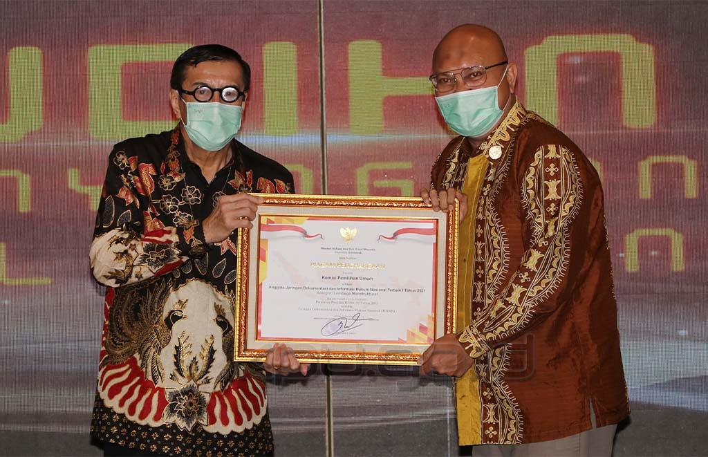 Jakarta, kpu.go.id – Prestasi membanggakan kembali ditorehkan Komisi Pemilihan Umum (KPU) RI di Tahun 2021 dengan kembali meraih predikat Terbaik 1 Jaringan Dokumentasi dan Informasi Hukum Nasional (JDIHN), dari Kementerian Hukum dan Ham (Kemenkumham), Kamis (2/12/2021).
