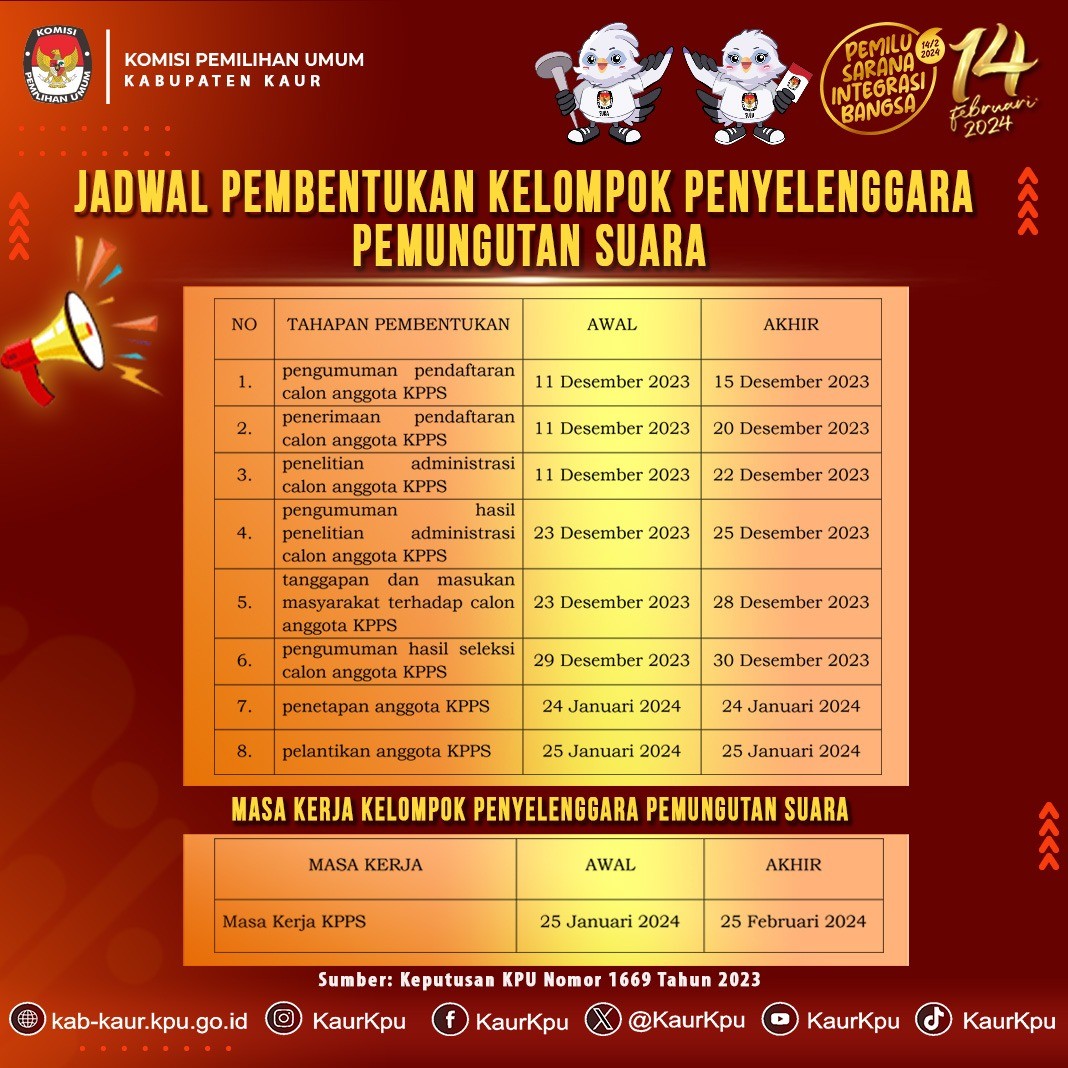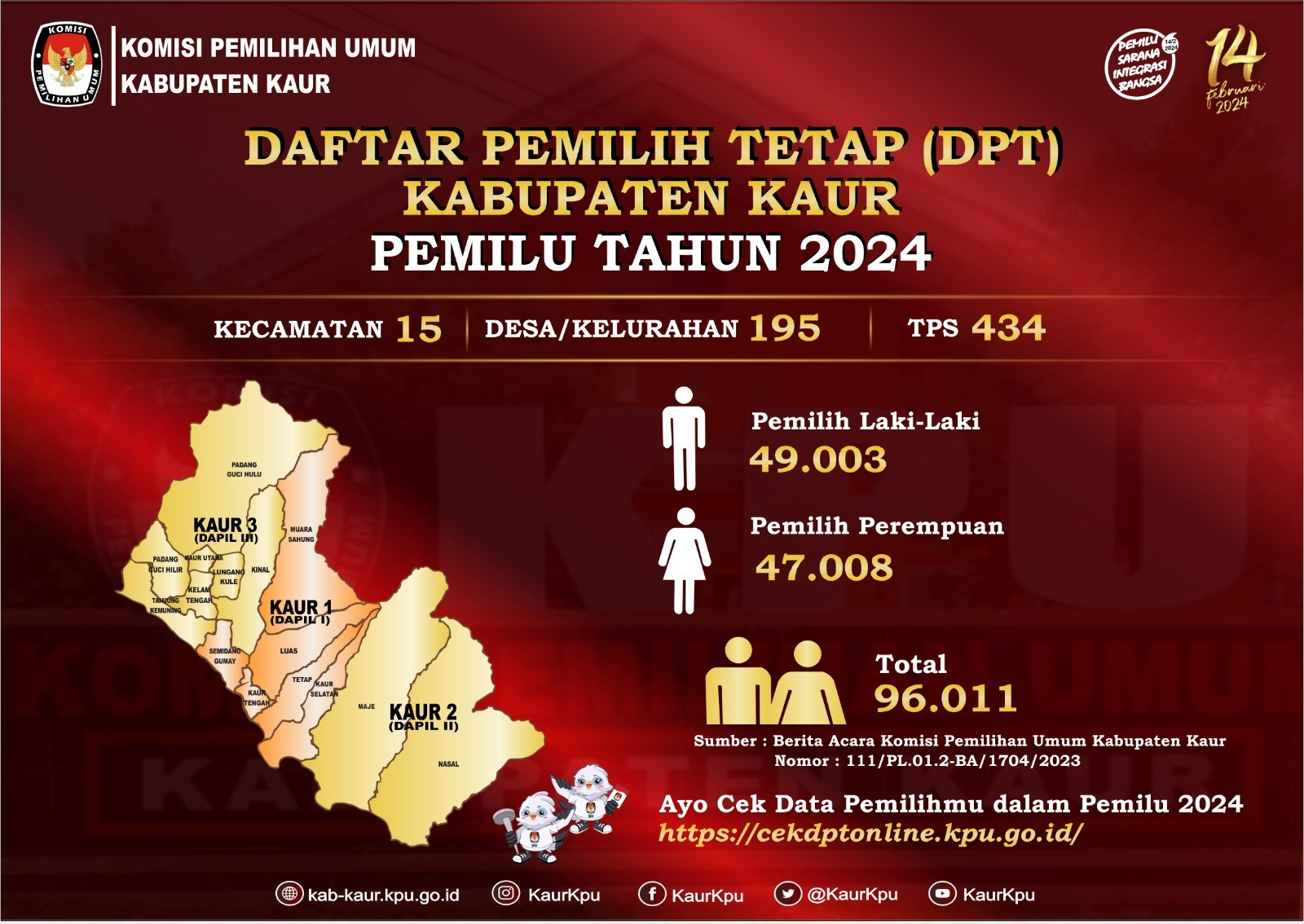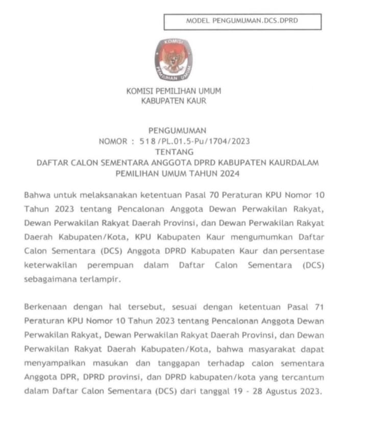 Sesuai dengan Ketentuan Pasal 12 PKPU 15 Tahun 2023 tentang Kampanye Pemilihan Umum, KPU Kabupaten Kaur mengumumkan nama Tim Kampanye Pemilu Presiden dan Wakil Presiden Tahun 2024.