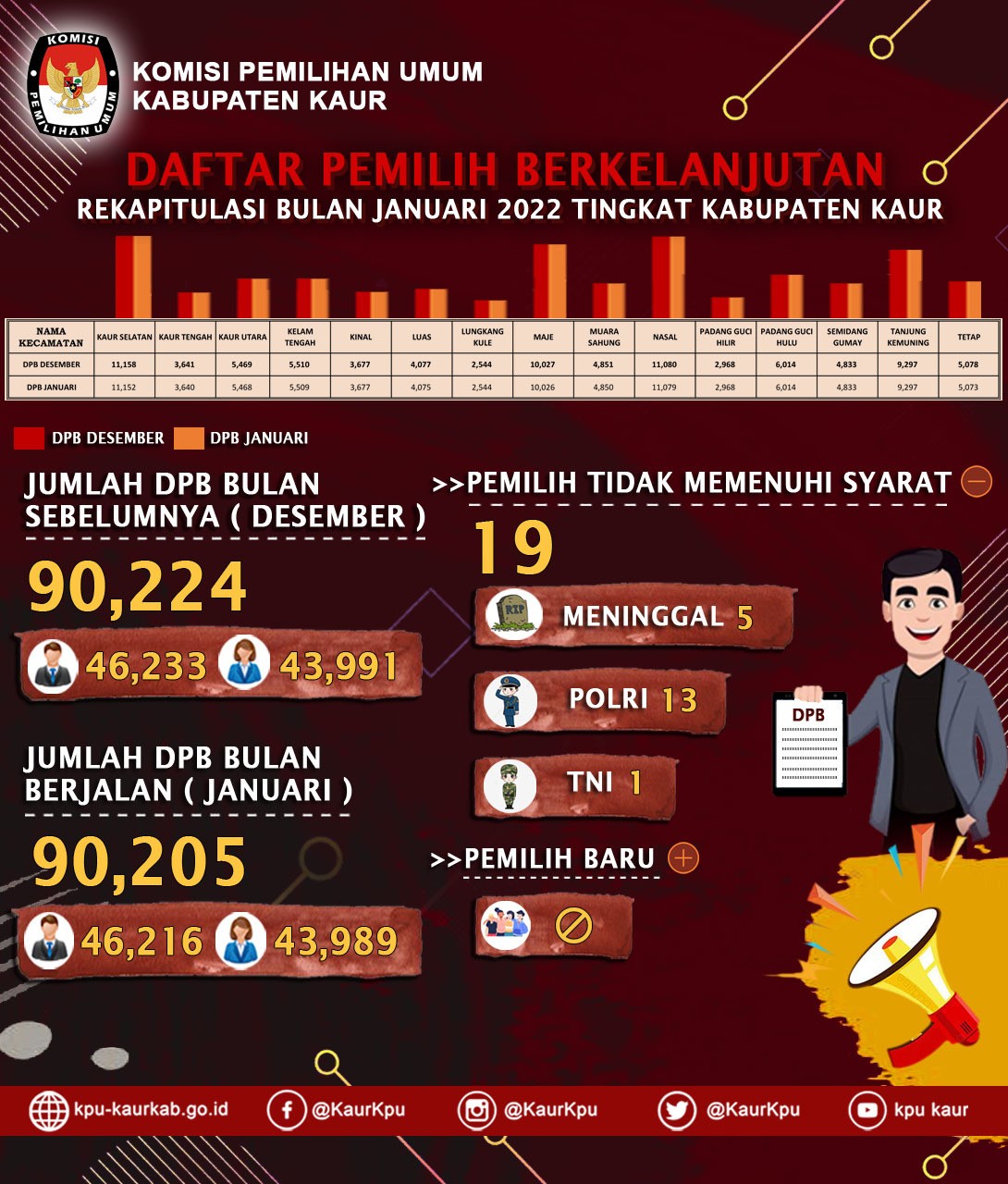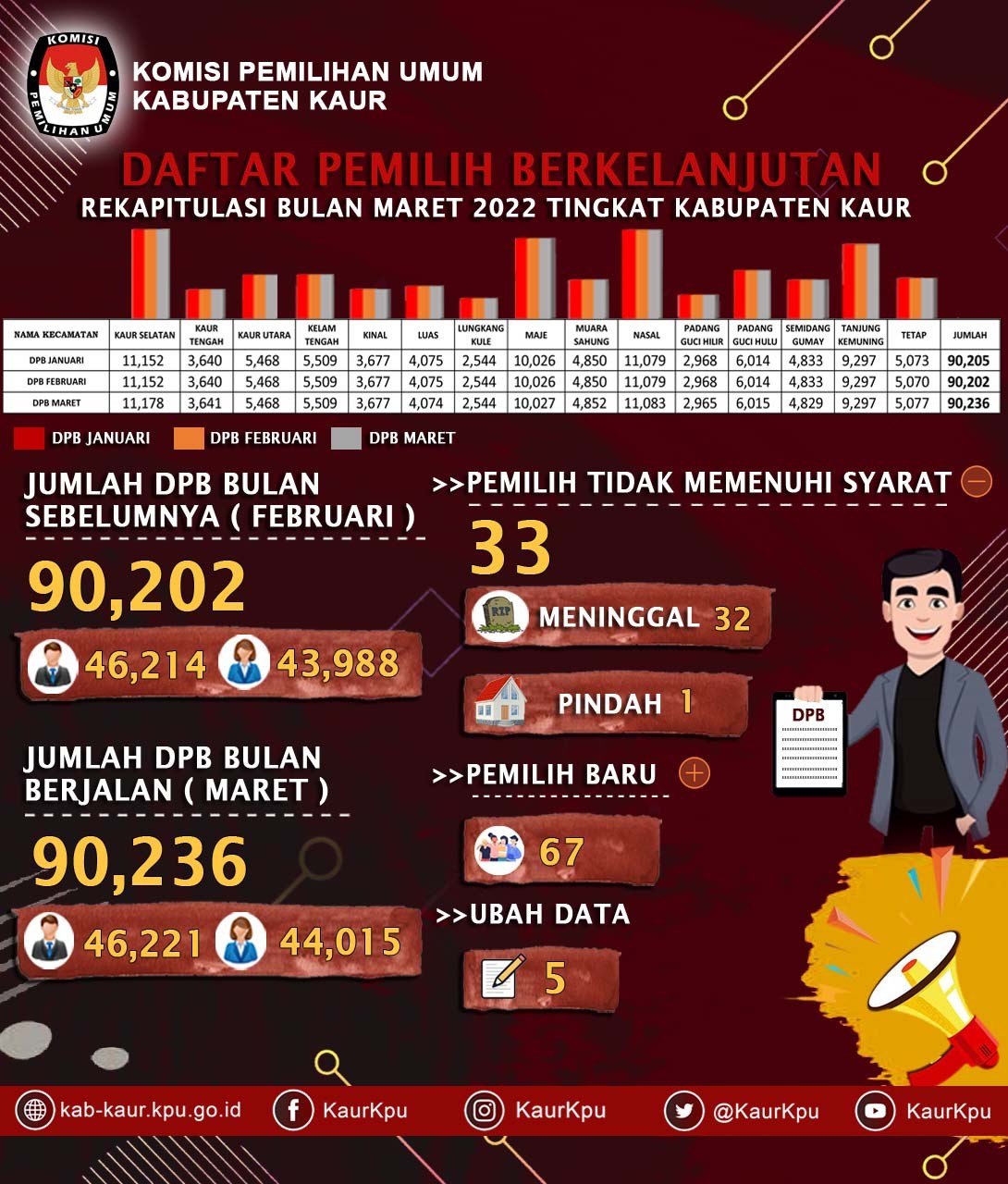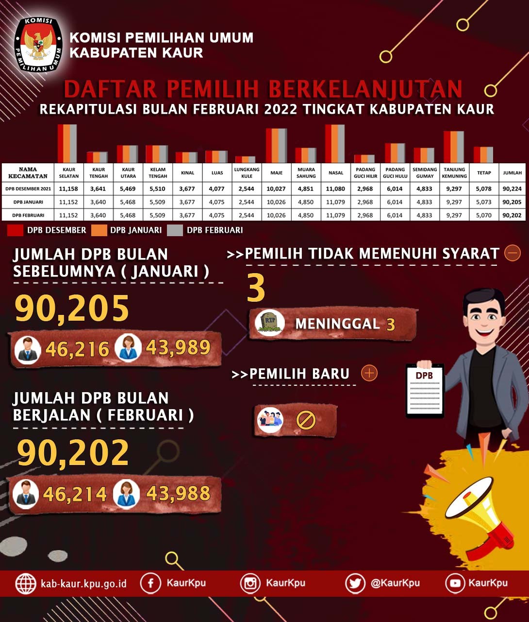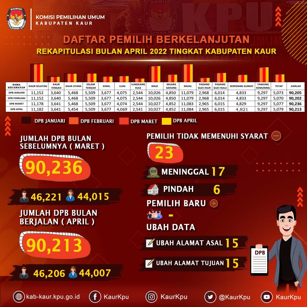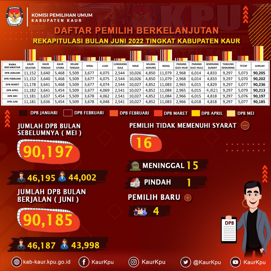 #TemanPemilih Berikut Rekapitulasi Daftar Pemilih Berkelanjutan Tingkat Kabupaten Kaur Informasi ini juga dapat lihat langsung di papan pengumuman Kantor KPU Kabupaten Kaur Jalan WR Supratman Kompleks Perkantoran Padang Kempas-Bintuhan.